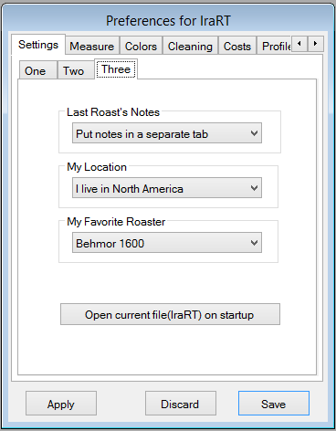 Preheat warning seconds is the point in the preheat time where the screen starts flashing and noises happen to warn that it's time to switch modes. Note Font Size The font size to use when displaying notes on the Roast Coffee, Roast Detail and Coffee Detail pages. Money Symbol The symbol used to show money. Optionally display it after the number. My Line Voltage Choose your line voltage. For 200V machines it is important to set this the same as the voltage you chose when you first set up the machine.